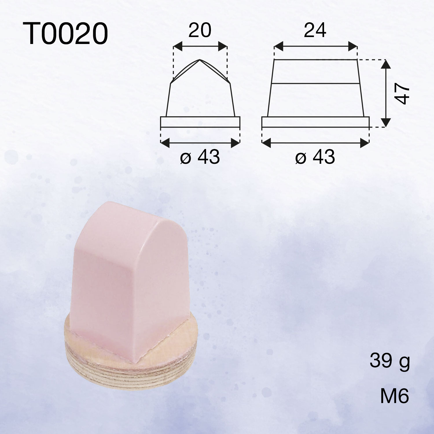 Standard roof-shaped printing pads are ideal for printing flat surfaces with scales or long lines of text. It is possible to produce pads in this shape in longer lengths. Due to the apex in the centre of the pad, it is important wherever possible to pick up the image on either side of the centre line to achieve the best print quality. Rectangular printing pads in this category are also available asymmetrically or with only one half of the roof profile.