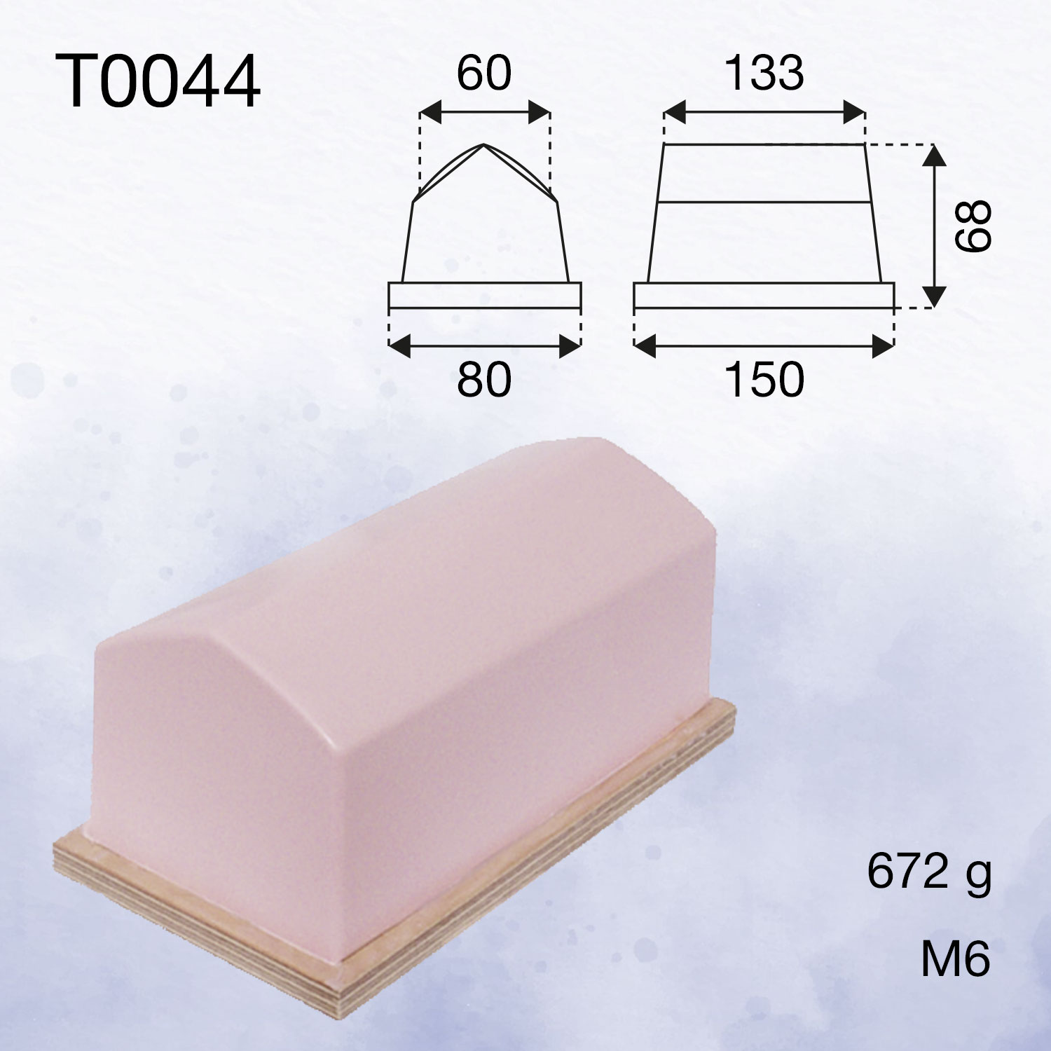 Standard roof-shaped printing pads are ideal for printing flat surfaces with scales or long lines of text. It is possible to produce pads in this shape in longer lengths. Due to the apex in the centre of the pad, it is important wherever possible to pick up the image on either side of the centre line to achieve the best print quality. Rectangular printing pads in this category are also available asymmetrically or with only one half of the roof profile.