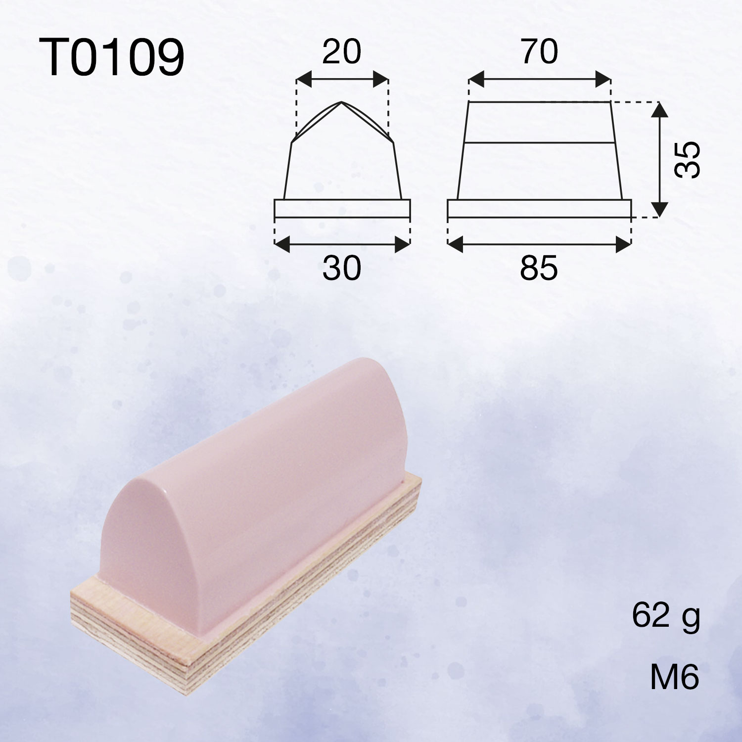 Standard roof-shaped printing pads are ideal for printing flat surfaces with scales or long lines of text. It is possible to produce pads in this shape in longer lengths. Due to the apex in the centre of the pad, it is important wherever possible to pick up the image on either side of the centre line to achieve the best print quality. Rectangular printing pads in this category are also available asymmetrically or with only one half of the roof profile.