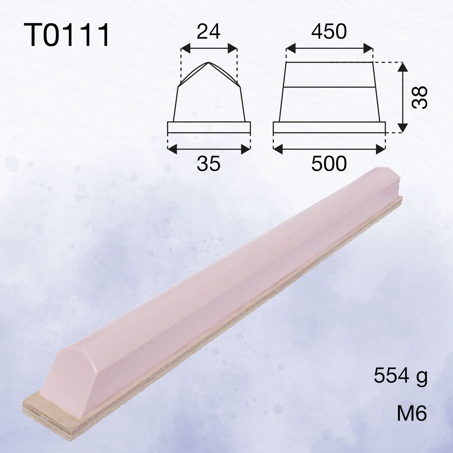 Standard roof-shaped printing pads are ideal for printing flat surfaces with scales or long lines of text. It is possible to produce pads in this shape in longer lengths. Due to the apex in the centre of the pad, it is important wherever possible to pick up the image on either side of the centre line to achieve the best print quality. Rectangular printing pads in this category are also available asymmetrically or with only one half of the roof profile.