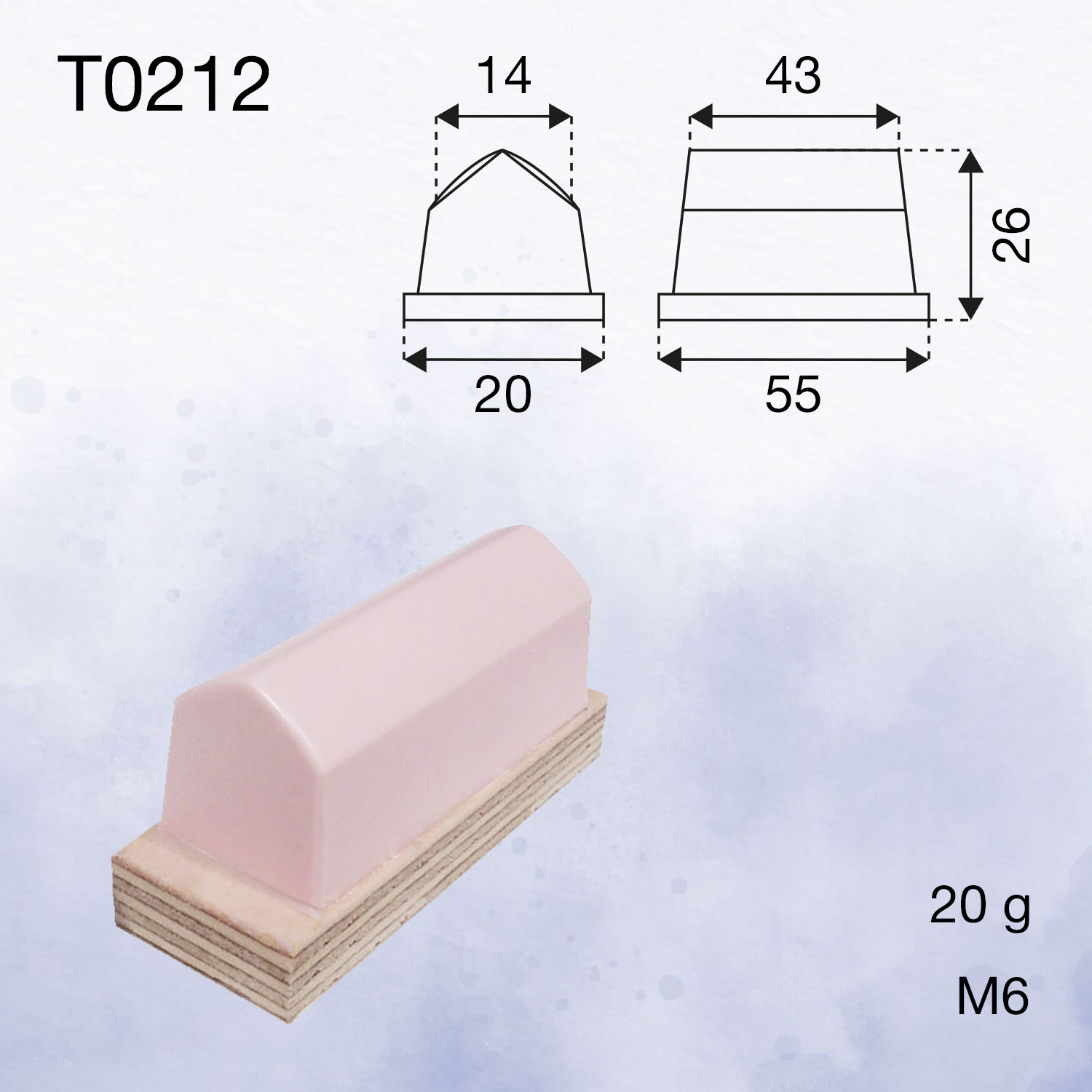 Standard roof-shaped printing pads are ideal for printing flat surfaces with scales or long lines of text. It is possible to produce pads in this shape in longer lengths. Due to the apex in the centre of the pad, it is important wherever possible to pick up the image on either side of the centre line to achieve the best print quality. Rectangular printing pads in this category are also available asymmetrically or with only one half of the roof profile.