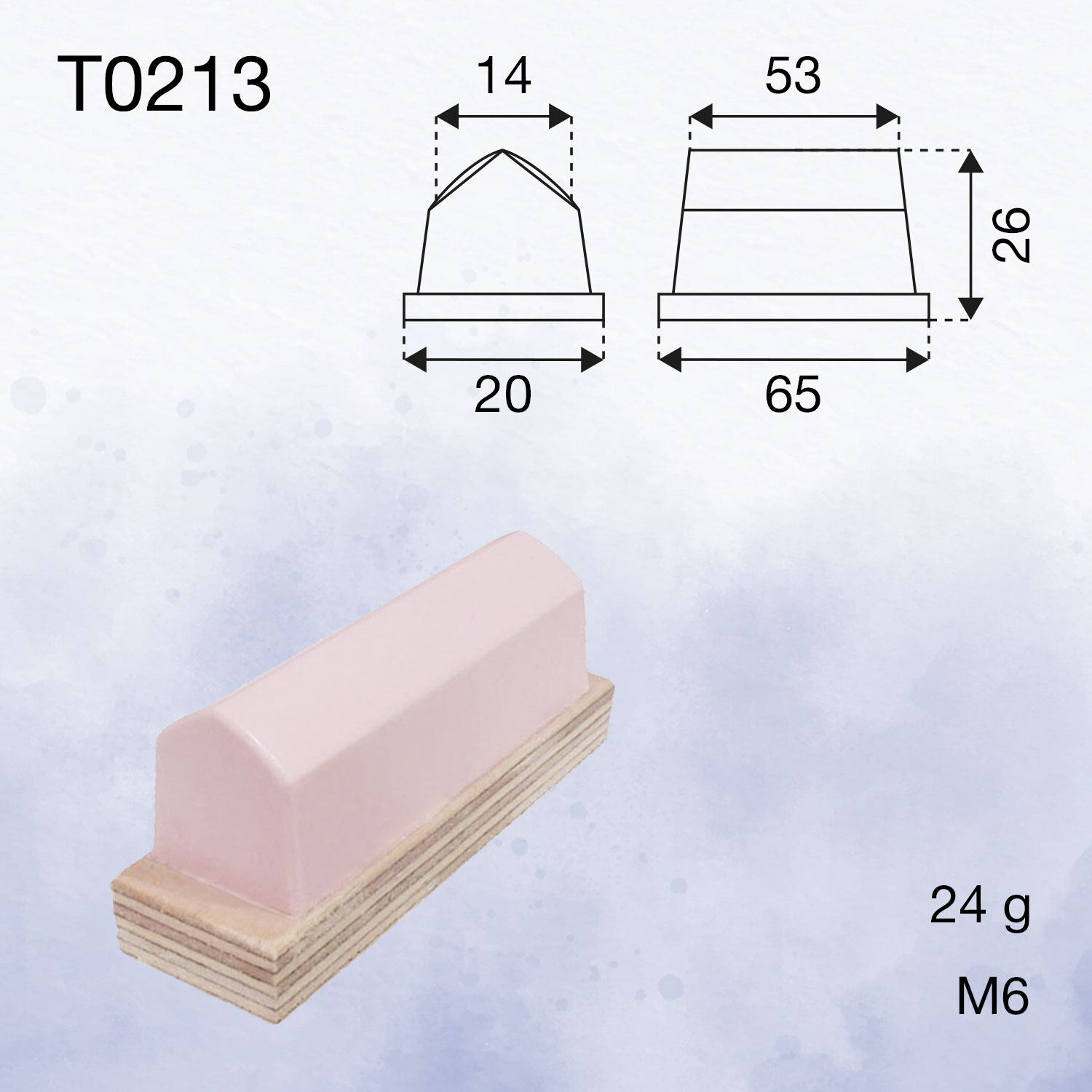 Standard roof-shaped printing pads are ideal for printing flat surfaces with scales or long lines of text. It is possible to produce pads in this shape in longer lengths. Due to the apex in the centre of the pad, it is important wherever possible to pick up the image on either side of the centre line to achieve the best print quality. Rectangular printing pads in this category are also available asymmetrically or with only one half of the roof profile.