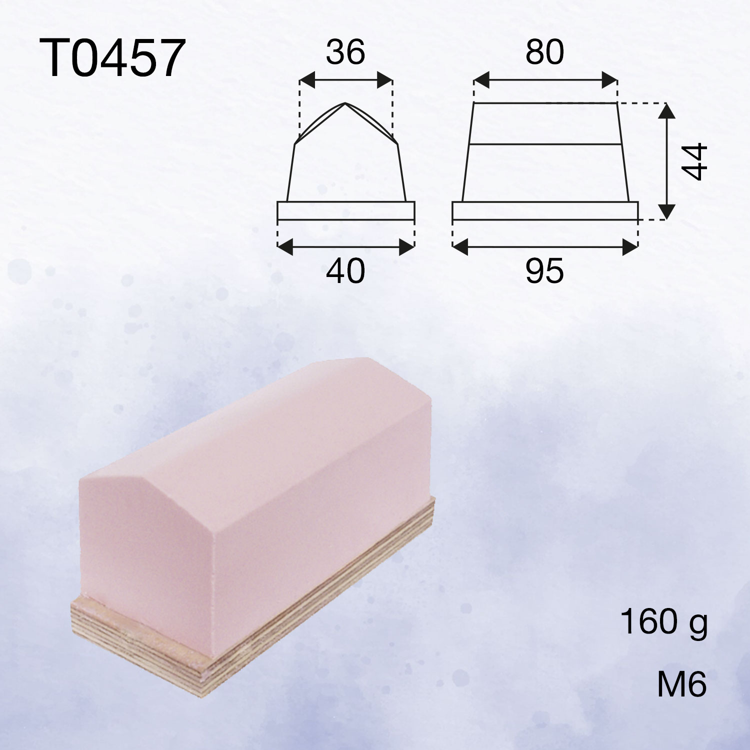 Standard roof-shaped printing pads are ideal for printing flat surfaces with scales or long lines of text. It is possible to produce pads in this shape in longer lengths. Due to the apex in the centre of the pad, it is important wherever possible to pick up the image on either side of the centre line to achieve the best print quality. Rectangular printing pads in this category are also available asymmetrically or with only one half of the roof profile.