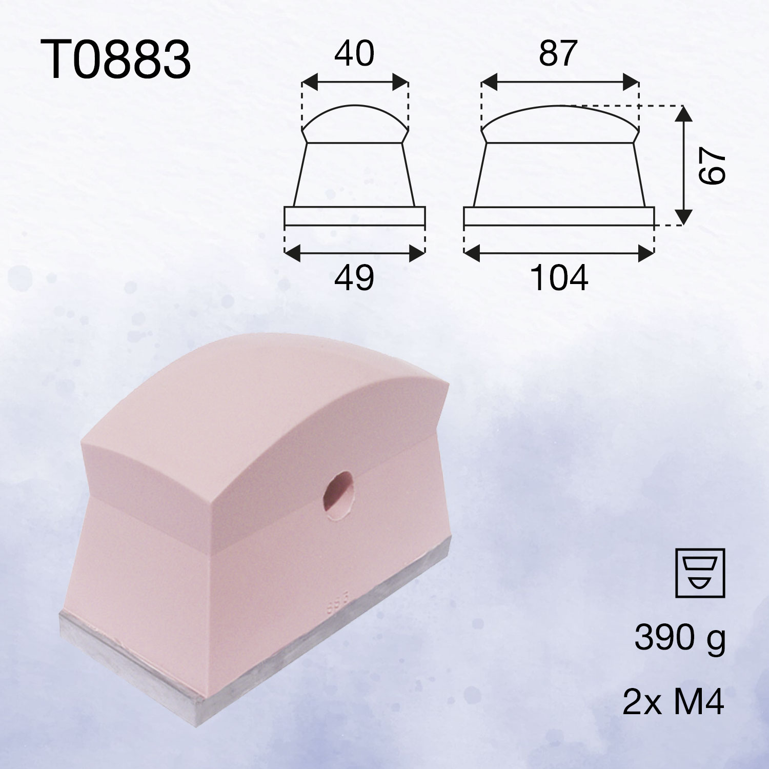 Our rectangular printing pads with an undercut creating a waist around the top of the pad are often used for printing into a recess or onto a print area where a regular pad would be too big to use. With the additional rolling enabled with this geometry, it is possible to pick up and print an image which is almost the full size of this pad’s printing surface.