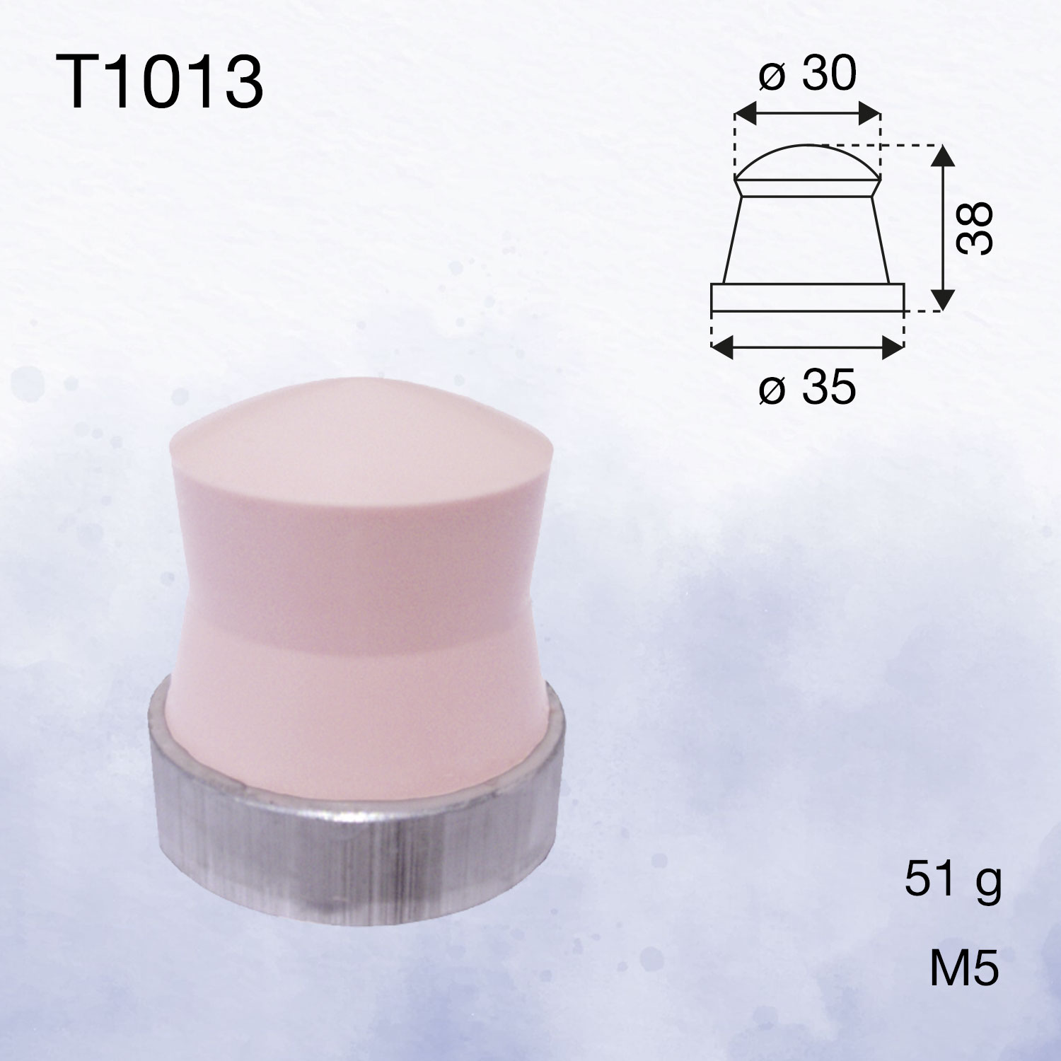 Round pads with an undercut are used frequently for printing on surfaces where the graphic is required close to a ridge or edge. Due to the innovative design of this pad, it is created with a waist, enabling pick up and transfer of an image that is almost the same size as the printing surface of this pad. As a result, the print can reach the edge of a raised area.