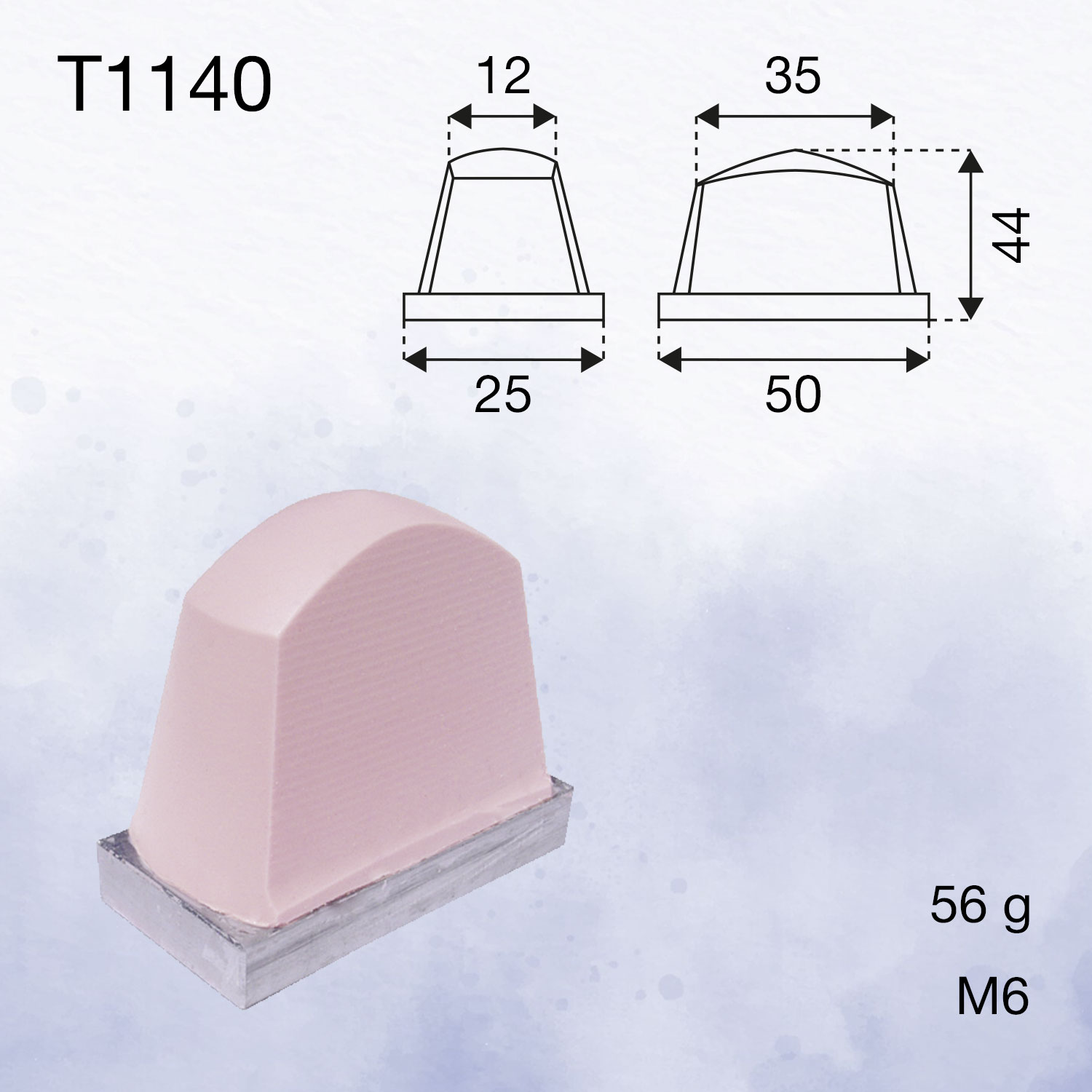 Printing pads for rectangular print images with a domed print surface can have either rounded or straight sides. Printing pads of this shape are suitable for printing along the length of a component or for parts which are fragile and could be damaged by higher pad pressures for example. They often have a cavity so that less pressure is required. Due to their special surface geometry, they have excellent unrolling behaviour on ink delivery.