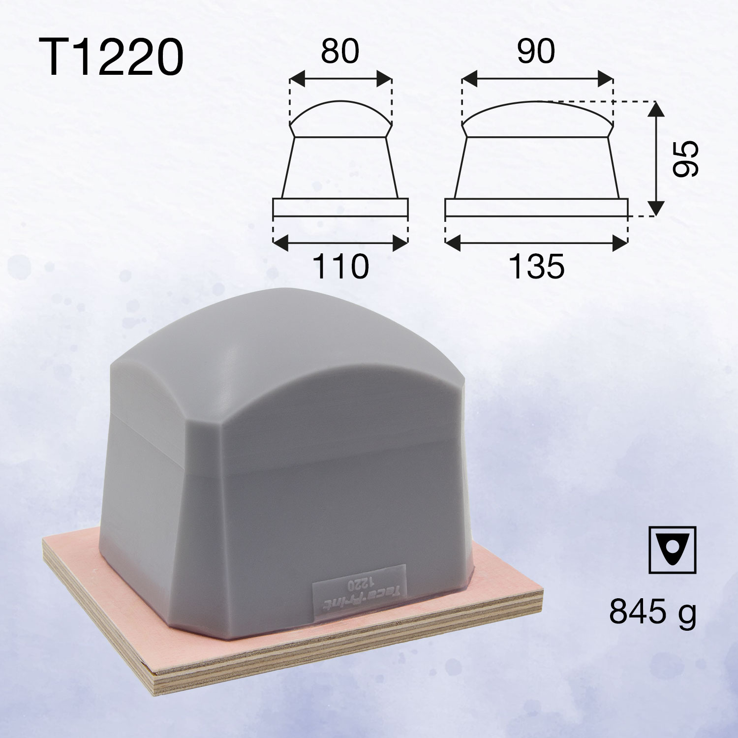 Our rectangular printing pads with an undercut creating a waist around the top of the pad are often used for printing into a recess or onto a print area where a regular pad would be too big to use. With the additional rolling enabled with this geometry, it is possible to pick up and print an image which is almost the full size of this pad’s printing surface.