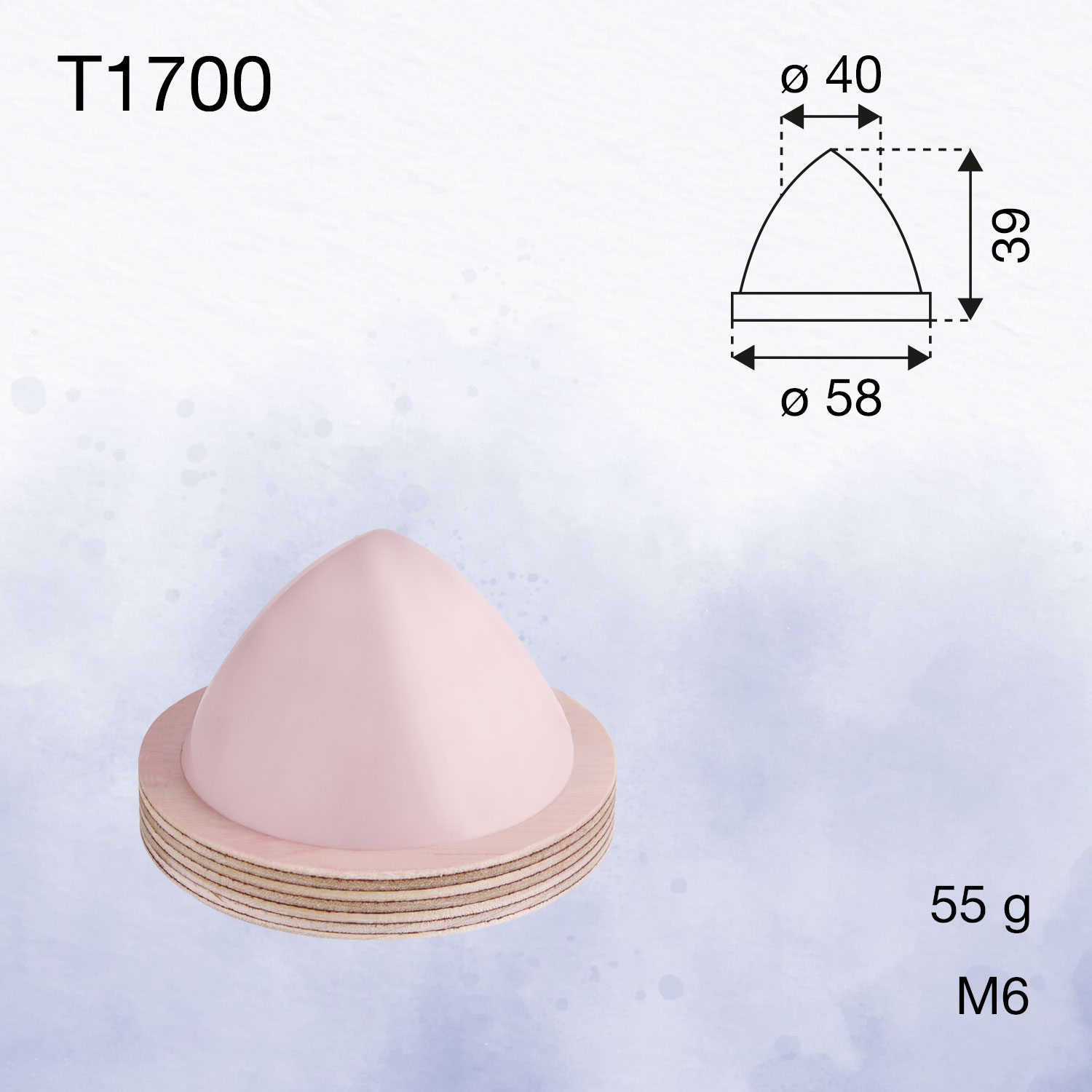 They are especially suitable for printing dials, coins, tachometers and scales. This pad shape is ideally suited to printing graphics similar to the scales found on watch dials, where there is no printing in the centre that could be affected by the point of the pad.